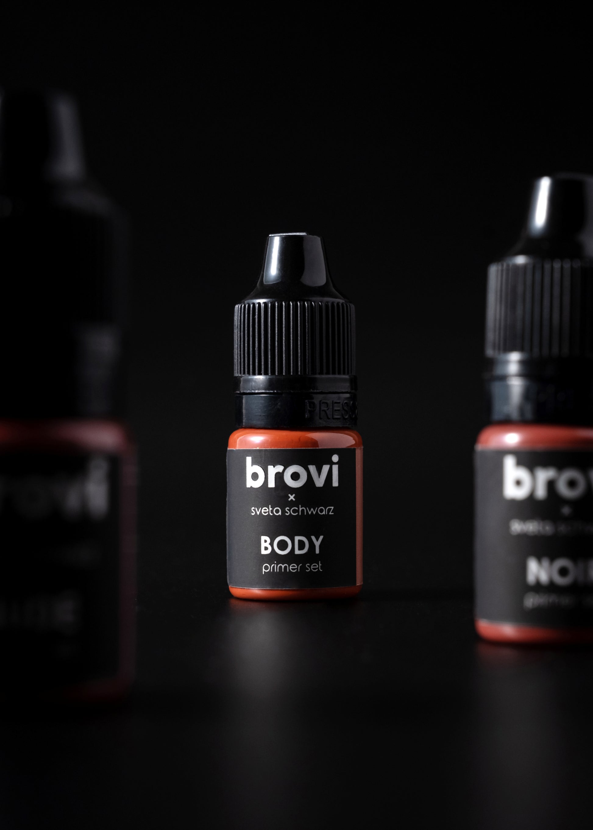 Takođe je moguće vizuelno povećati volumen usana do sopstvenih mogućih granica, u odsustvu njihove pigmentacije duž kontura. Koristeći prajmer #3 Noir ili mešajući ga sa prajmerom #1 Body, možete nijansirati beli valjak usana do prihvatljivih granica, lagano ga blendirajući duž crvene granice, a zatim nastaviti sa uobičajenim tretmanom korišćenjem dekorativnih nijansi iz palete za usne. Sa ovim pristupom tretmanu, PMU umetnik će postići savršen zaceljen rezultat i vizuelno povećati usne klijenta.